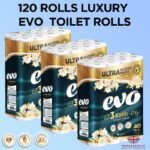 Upgrade your bathroom essentials with the 120x Luxury Evo Toilet Rolls 3ply Ultra Advantage Pack. This set includes degradable and recyclable wipes for a convenient and eco-friendly solution.