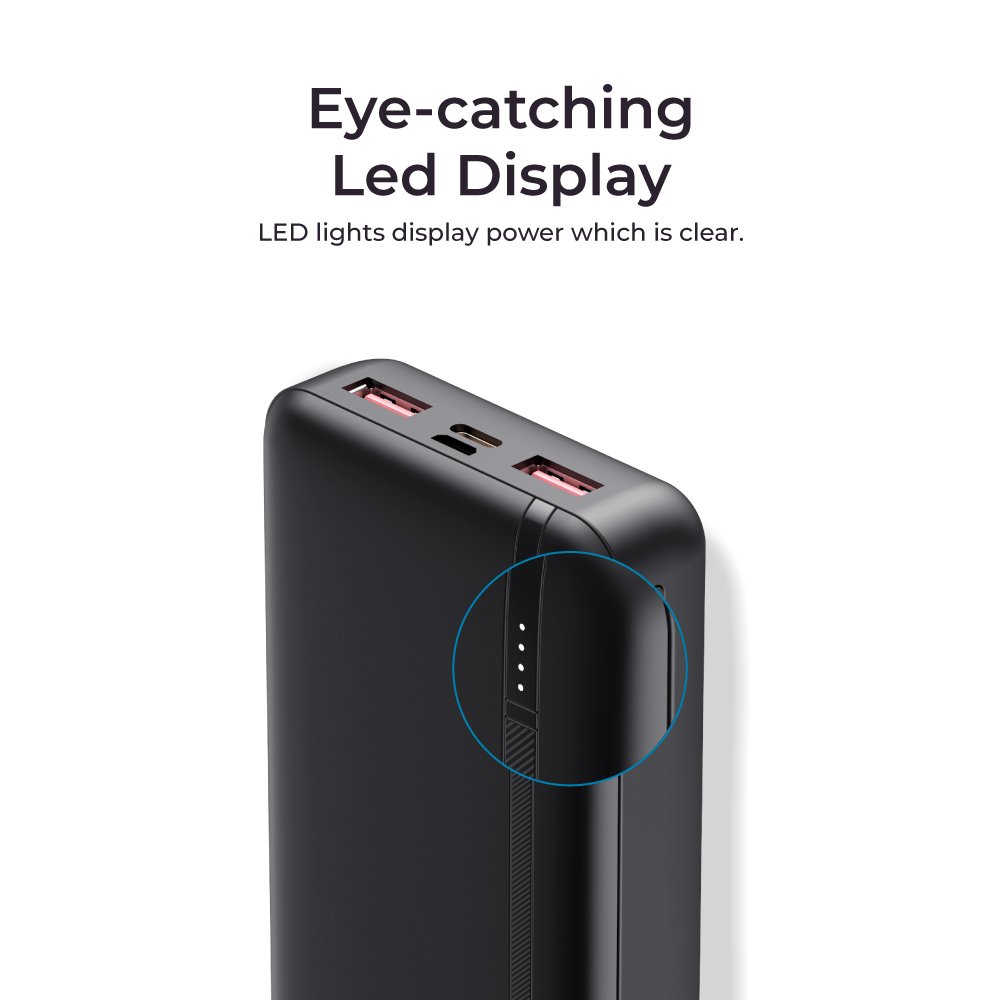 HAVIT – 20000mAh PD20W USB-C + Dual 22.5W USB-A Fast Charge Power Bank. Black | White