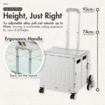 • Ergonomic Handle: The comfortable. ergonomic handle provides a secure grip. allowing you to maneuver the trolley with ease. even when fully loaded.