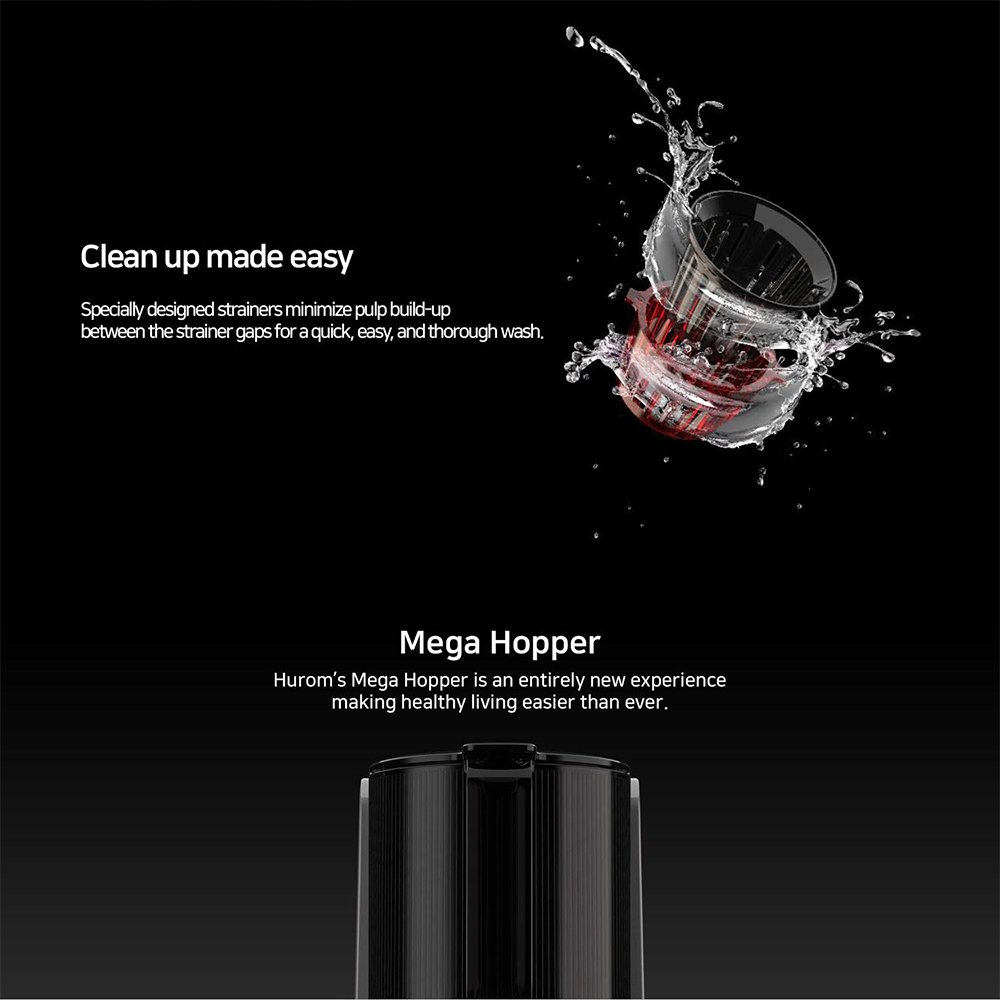 Strainer-Free Chamber: Traditional juicers require a strainer which collects minerals over time. requiring extensive scrubbing. The H400 utilizes a revolutionary mechanism that minimizes pulp – even without a strainer. The strainer-like function is practically embedded within the chamber and the two-part auger meshes together to strain out pulp-free juice – which means bare minimum cleaning for high-quality juice!