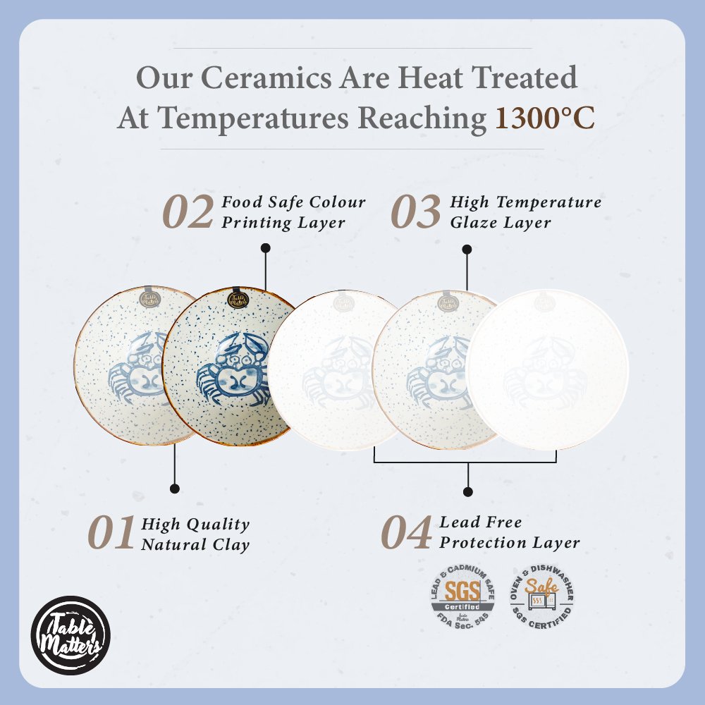 Our tableware are Lead and Cadmium Free. Microwave Safe. Oven Safe and Dishwasher Safe