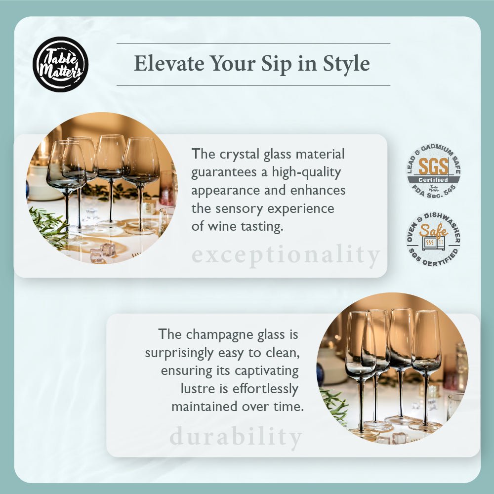Introducing the Nero Gradient Collection from Table Matters. a harmonious blend of sophistication and functionality that redefines the essence of dining. Meticulously crafted from the finest crystal glass. this collection is a beacon of elegance and resilience. Using crystal glass brings a touch of luxury to your Table and reflects a commitment to sustainable dining practices.