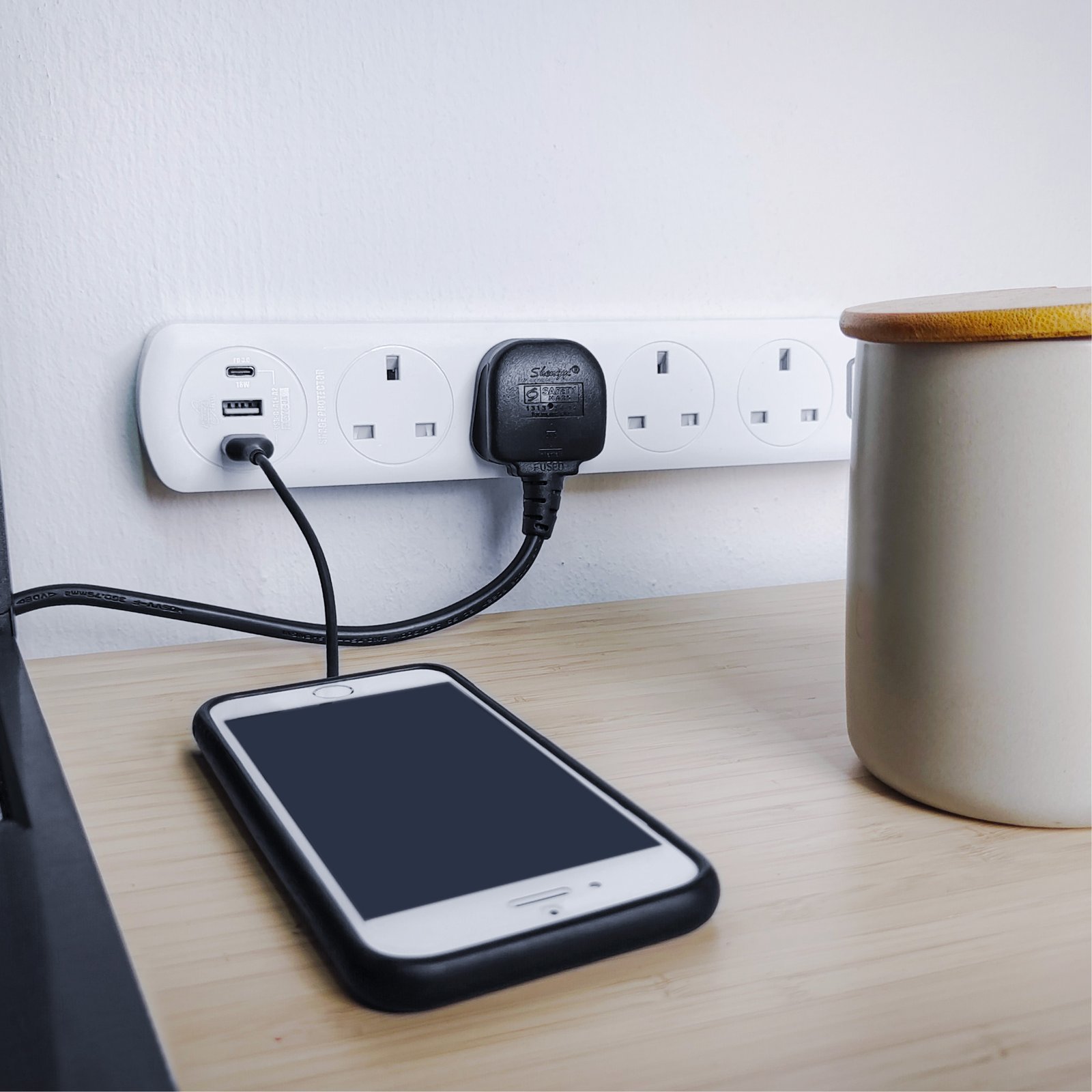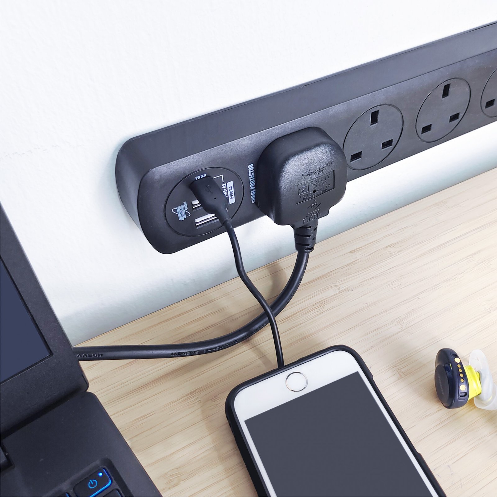 SOUNDTECH – 4Ways 2Metres Extension Socket with USB A+C. BLACK | WHITE